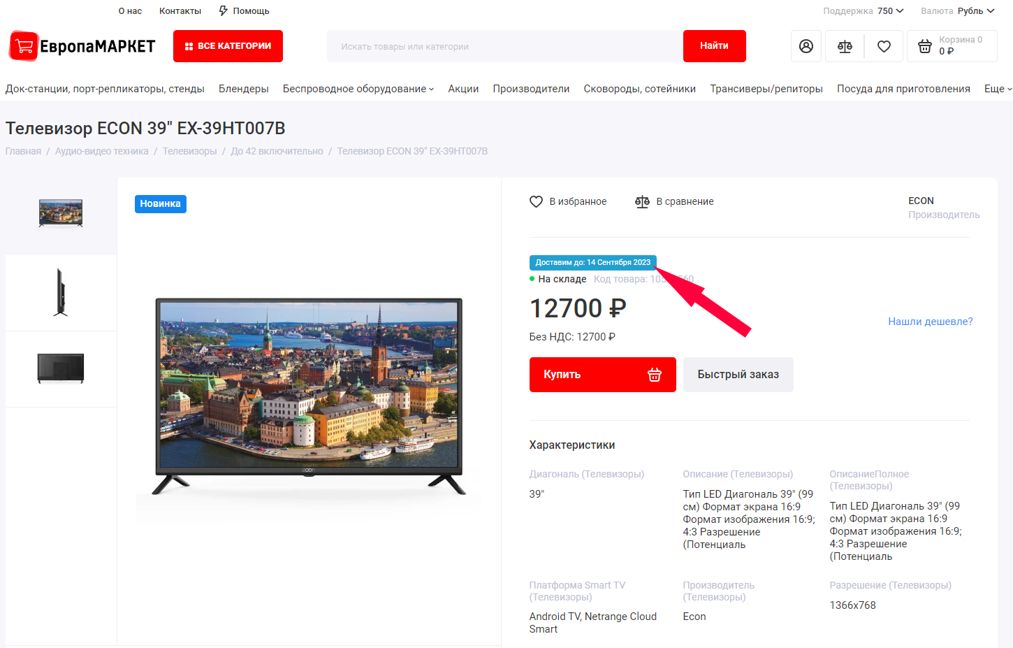 Ориентировочные сроки доставки указаны в карточке товара